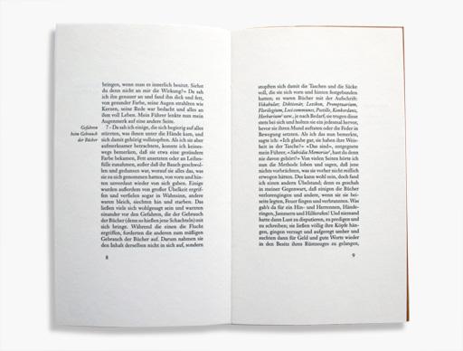 Beschreibung der Bibliothek, Gefahren beim Gebrauch der Bücher, Bücherfreunde, Unfug beim Bücherschreiben