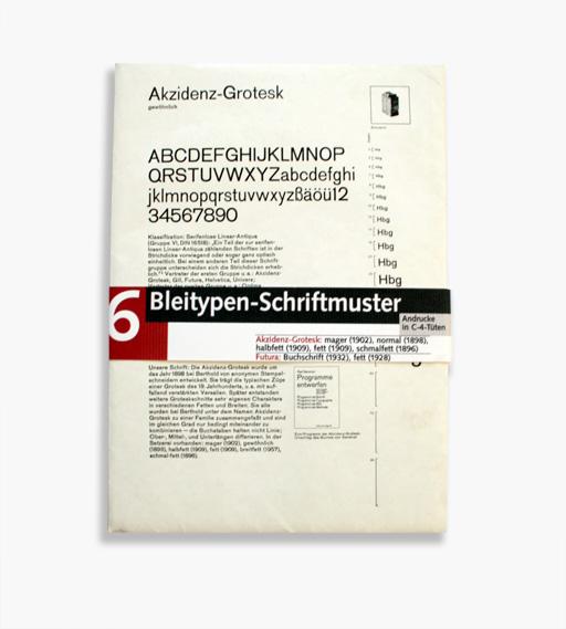 Andrucke in C-4-Tüten, Teil der Schriftmusterbibliothek der Typografiewerkstatt von 1977
