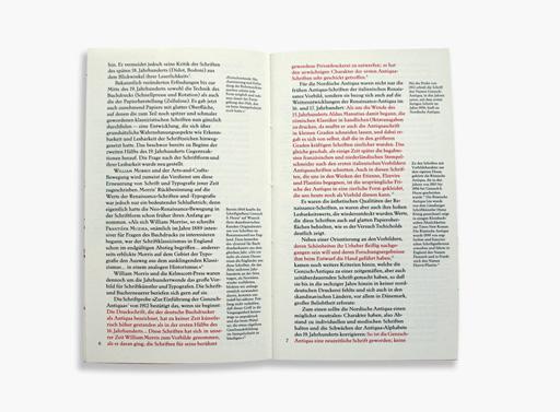 Die nordische Antiqua war der erste ernsthafte deutsche Versuch zu einer Schrift im Renaissance-Stil nach dem ausklingenden Klassizismus in der Druckschrift im 19.jahrhundert. Und obwohl sie sich über 50 Jahre hinweg vor allem im Norden Deutschlands und in den skandinavischen Ländern großer Beliebtheit erfreute, stand sie bisher nicht für den Fotosatz zur Verfügung. Das Heft reflektiert die Entstehungsgeschichte, wirft einen Blick auf Bücher, die in dieser Schrift gesetzt wurden, und beschreibt ihre neuerliche Bearbeitung zum Schrift-font an der Hochschule in Hamburg.